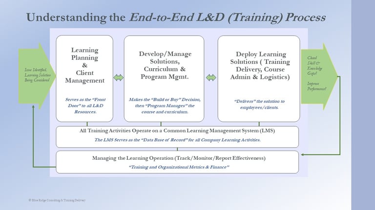 A high-level view that represents one example of the entire process for managing, creating and implementing a training problem and solution.